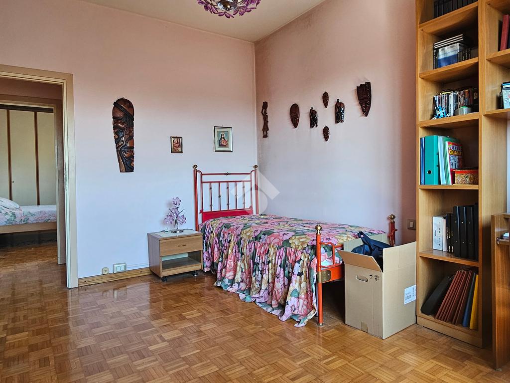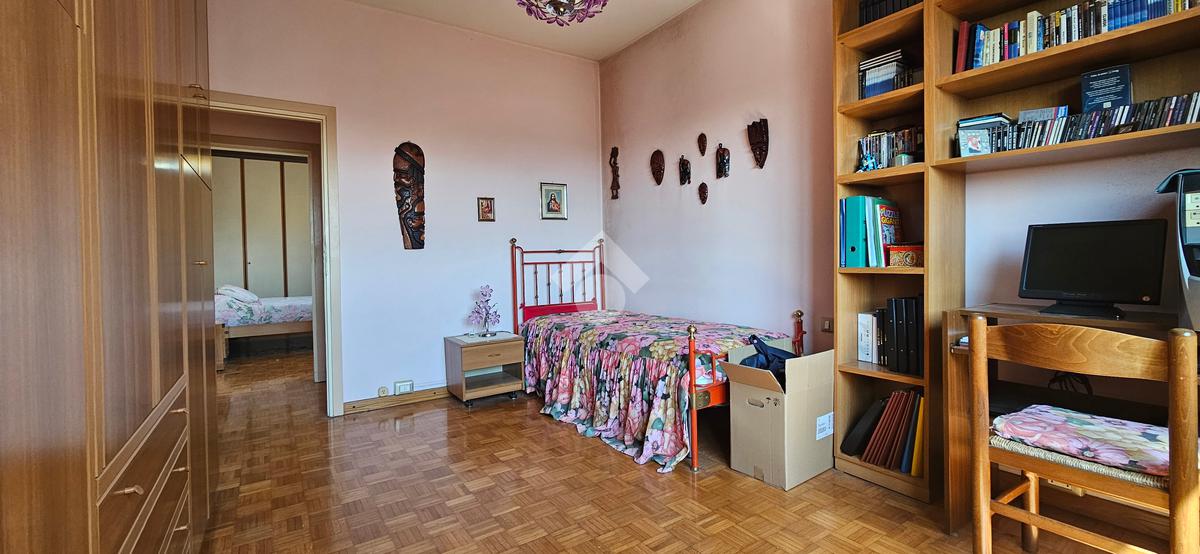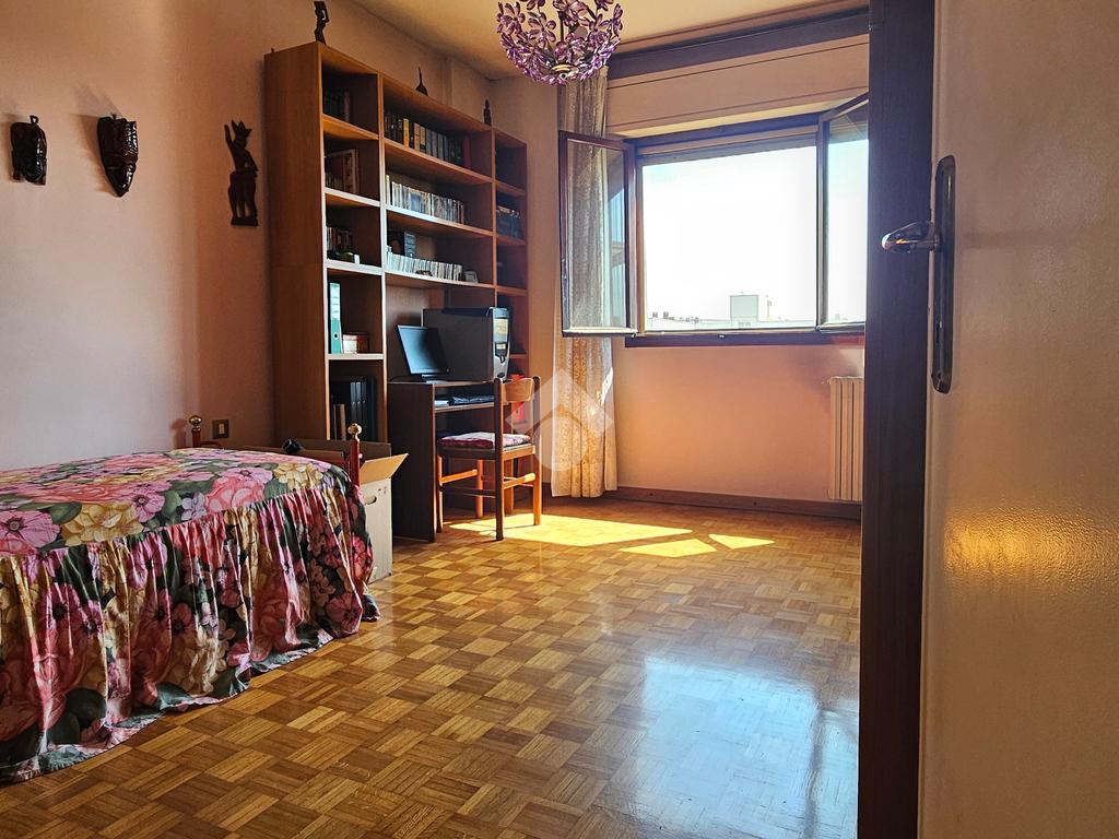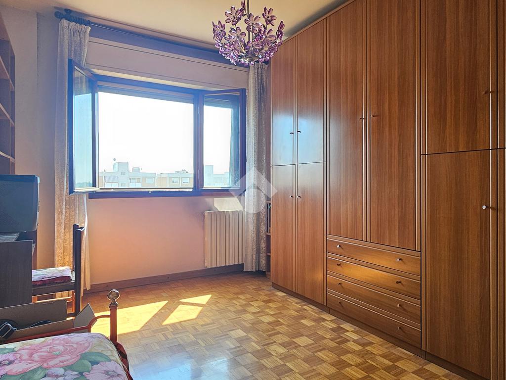 L'appartamento ha un taglio classico. Oltre la porta blindata si viene accolti da un vano ingresso. Sulla sinistra troviamo l'accesso alla cucina abitabile con balcone. Sulla destra c'è l'accesso al soggiorno doppio, con un balcone e una finestra. Proseguendo dritto entriamo nel corridoio della zona notte. Sulla sinistra, una rientranza fa da disimpegno tra i due bagni con finestra. Il bagno principale è stato completamente ristrutturato nel 2015. Successivamente incontriamo la porta della cameretta e della camera padronale. In fondo al corridoio, frontalmente, c'è la porta di un comodo ripostiglio. A destra c'è l'accesso alla seconda camera matrimoniale.